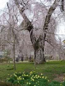 今朝は09:00に「大鰐(おおわに)弘前IC」を出た。平泉前沢ICから乗り「紫波IC」で一晩泊ったんだが、料金は千円也。岩手県からの道中はずっと雨だった。それが弘前に下りた途端晴れ間が見えて幸先が好いと喜んだんだが、一日千円の駐車場に入れて弘前城に入ったらまた雨が降り出した。降らないと予測して傘を持たなかったのでずぶ濡れの花見になった(/_;)(`´)。桜の咲き具合は、外濠の外周りは満開に近くて綺麗なんだが城内は六分咲き、枝垂れ桜に至っては一、二分咲きで寂しいもの。高遠城の桜はヒガンザクラ一色で一斉に満開になるんだが、弘前城内は枝垂れ桜が多い。枝垂れとソメイヨシノの開花時期が相当違うので難しい、ここの最盛期は一週間後で、その頃にはソメイヨシノは盛りを過ぎて散り急ぎ、枝垂れ桜は満開にやおら近づくって感じかな、どっちにしてもチグハグ感があるのが弘前城の桜の特色。テントの店が並んでいてその中に津軽の陶器を並べている店があったので入ってみた。ら、気に入ったモノがあったので六点ほど買った、帰って使うのが楽しみぃ(*^^)v城と桜の構図は、雨に祟られ枝垂れの開花が今一で冴えなかった(*_*; 岩木山とリンゴの花の構図、これはもう話にならない。岩木山は本式の降りで姿を現さず、一方リンゴの樹は蕾も膨らませていない状態。「岩木山神社」だけでも拝んで行こうと探したら、その前に「高照神社」というのに出っ逢わした。これが不思議な神社、津軽藩4代目の当主が「吉川神道」式に葬られて自ら神になっている、拝殿・神殿などが完璧に整いそれがまたユニーク、こんな神社がこの世に成立し、しかも300年間維持されてきたのが不思議。ここでもずぶ濡れ。岩木山神社は近くにあった。これがまた想像を遥かに超えて大きくて美しい神社、岩木山の頂上に奥宮がある。今度は懲りて傘をさして雨の中を参詣。左手が傘で塞がりも右手一つでデジカメを操作しても正確にできることを発見、それだけ今のデジカメは軽くて小さい。岩木山神社には出逢えて好かった、神ながらの道が姿形をとるとこうなるという神社の原型の様な感じ。両神社のことは写真で示すしかない。こうして今日も一日雨に祟られて終わった。この道の駅は、朝ICを下りたときから目を付けていた、ICを下りて直ぐの所。ここは十和田湖を直に覗える好位置。明日から天気が回復して呉れることを祈りながらここで泊まる。この道の駅を歩き回っていたら向かいに何と「花の湯」を発見、大きな綺麗な銭湯。天は僕に風呂をつかってこいと命じられているのであろうか。疲れたし、どうすっかなぁf(-_-;)。