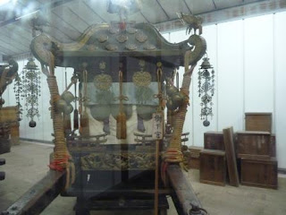 西本宮から東本宮に行く山裾の参道沿いに神輿舎がある。七宮から七基の神輿が出る。