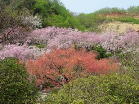 ↓ここの桜はほとんどが枝垂れ桜。枝垂れでなくても、染井吉野がほとんどない。それが好い。