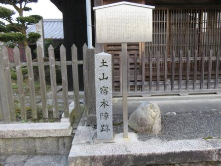 〇明治元年九月に明治天皇が行幸されたとき、この本陣で満十六歳の誕生日を迎えられ、近代日本としては初めての天長節が祝われた。この時には土山宿の住民に神酒と鯣(するめ)が下賜され、今なお土山の誇りとして語り継がれているそう。