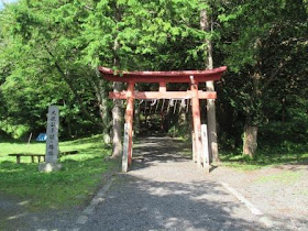 「首塚 中世の英傑・九戸左近将監源政実公」 この人物は、豊臣秀吉軍とこの地で対峙したとき、己一個の首を差出して籠城したすべての将兵・民の命を救ったという。さながら秀吉の備中高松城水攻めの際に湖上で独り切腹して城中の将兵・民の命を救った城主清水宗治を髣髴とさせる。↓九戸政実を祀る摂社