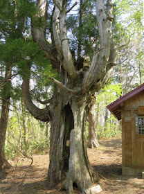 子持ち杉‥地蔵堂の傍らに立つ老杉は、幹からひこばえのように枝を伸ばし、村人に「子持ち杉」と呼ばれ、神霊の宿る木と信仰されている。 尾花沢市・最上町」